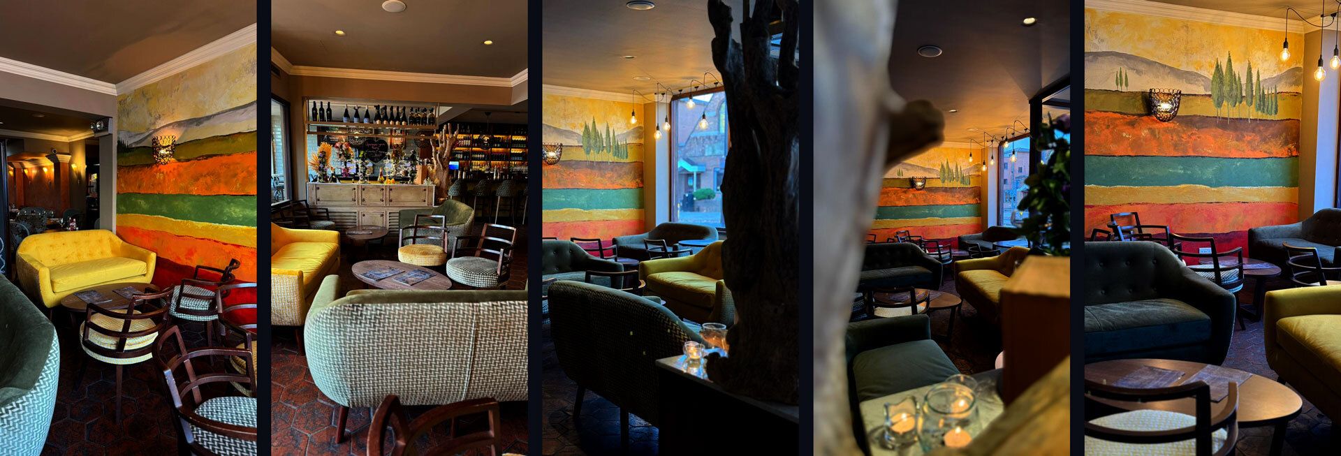 With a gorgeous mural, cosy low seating, and a relaxed atmosphere, it’s the perfect spot to start your evening with a drink before your meal.